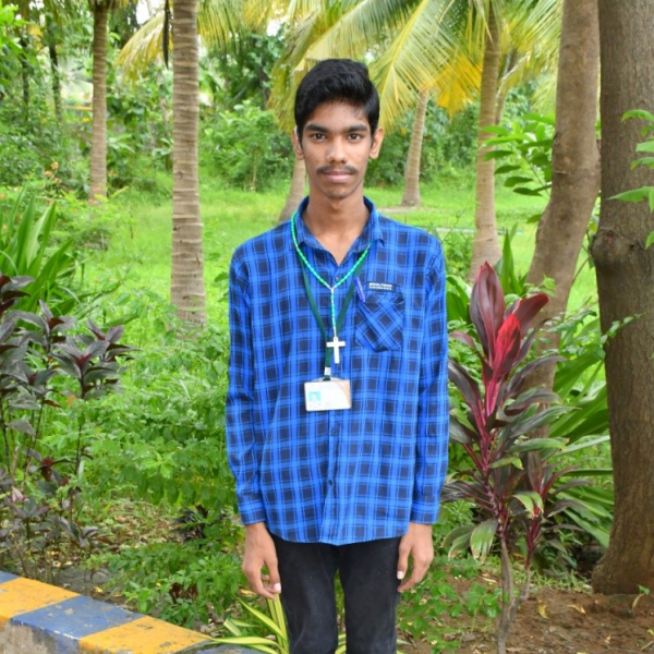 Family Information: His father passed away. His mother's name is M. Santhi, and the highest level of education she completed is 5th grade. She works as a daily wage earner. She has 2 other children - an older daughter and a younger daughter. They live in a one room house which they own.
